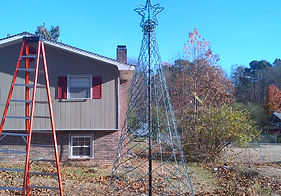 The 4 singing trees are made out of metal rod stock bent welded and powder coated by http://www.wireframedlites.com/